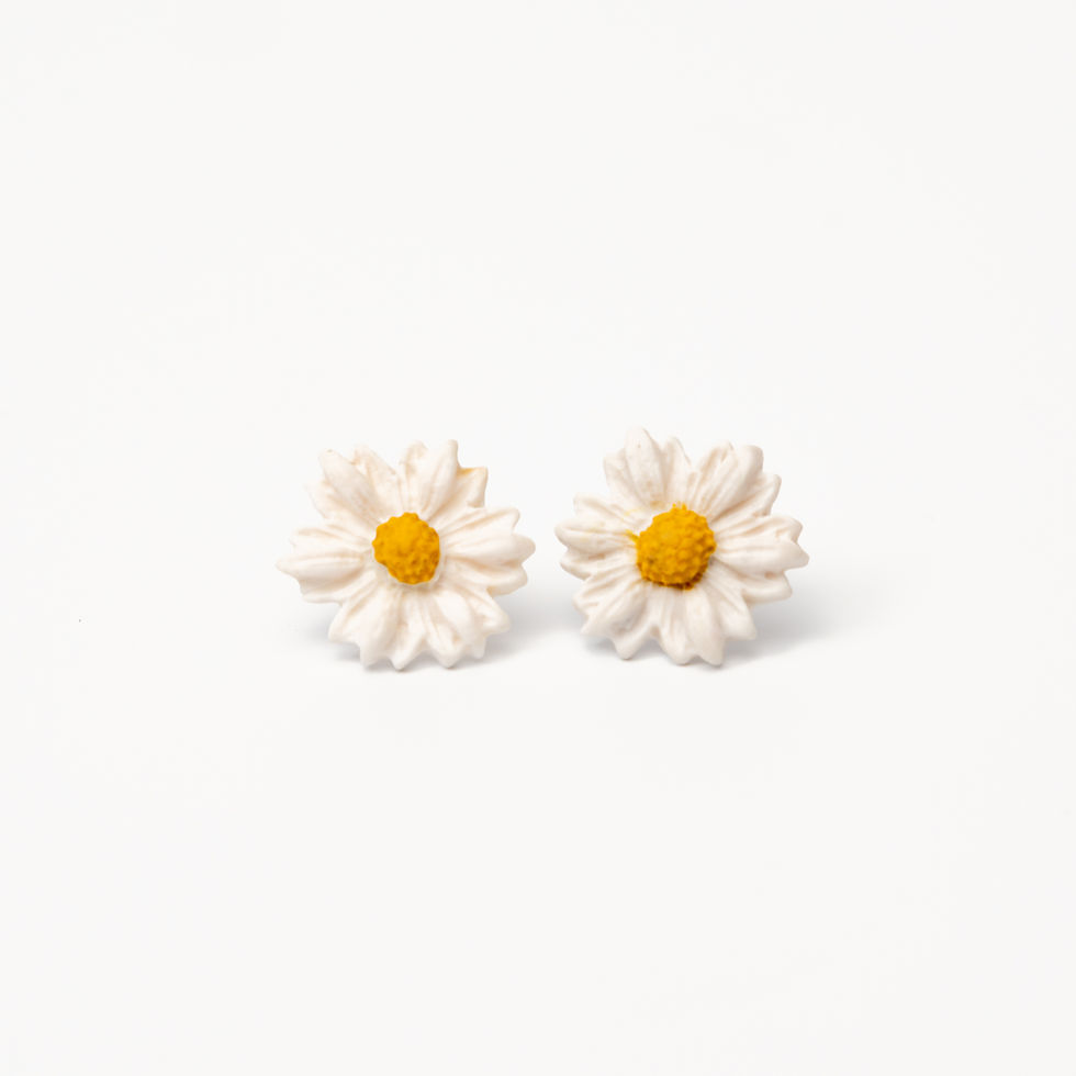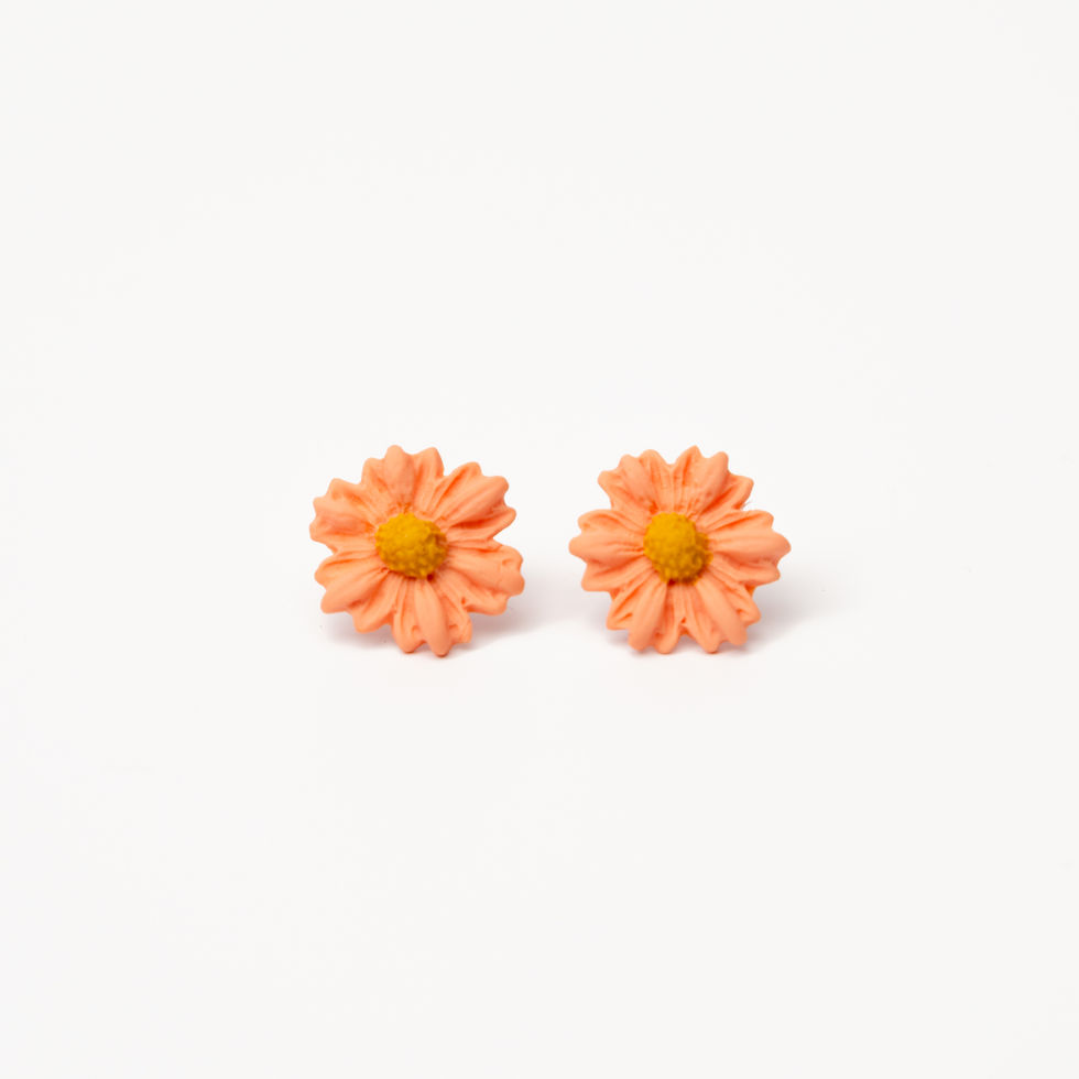 Lengvi, prigludę prie ausies, gėlės žiedo formos auskarai iš polimerinio molio. Žaismingos spalvos nukels akimirkai į gėlių pievą ir padovanos šypseną.